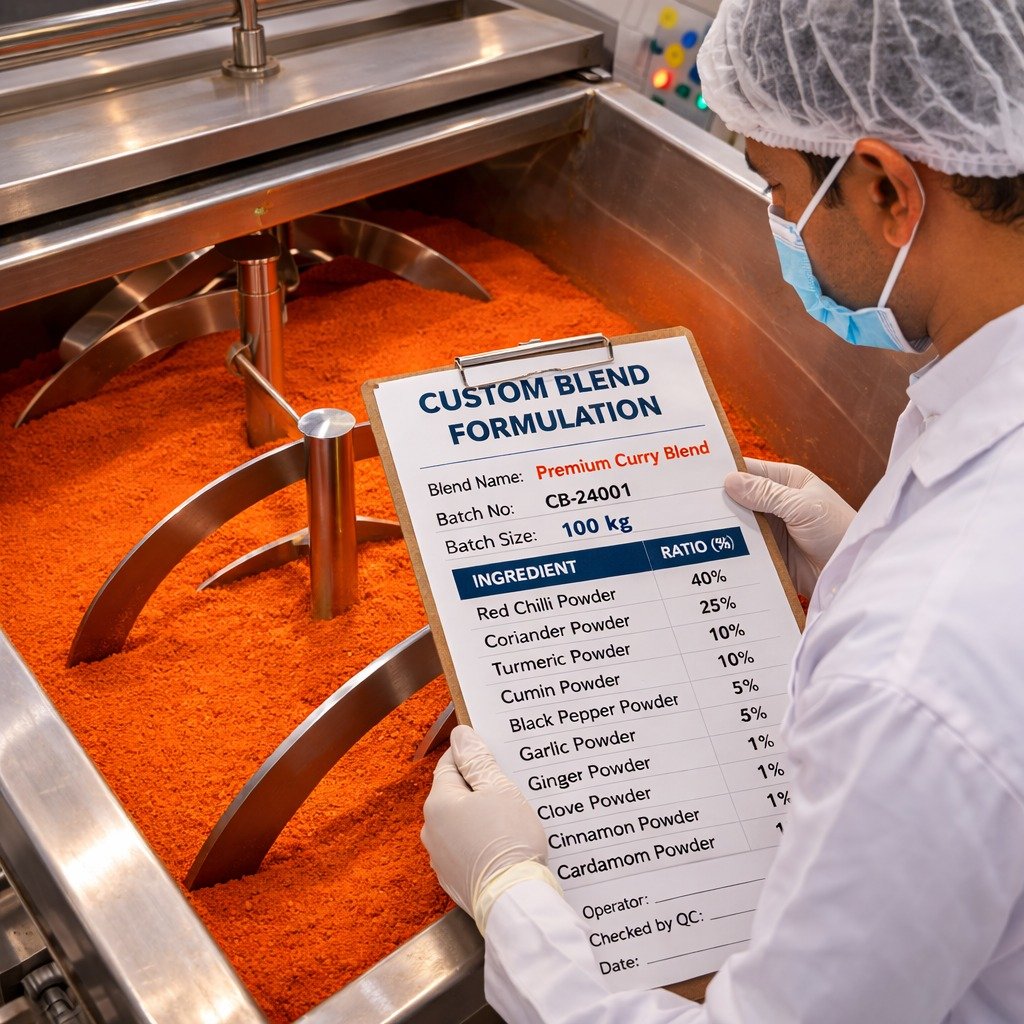 Custom spice blends are developed to meet defined application requirements across food manufacturing and culinary use.